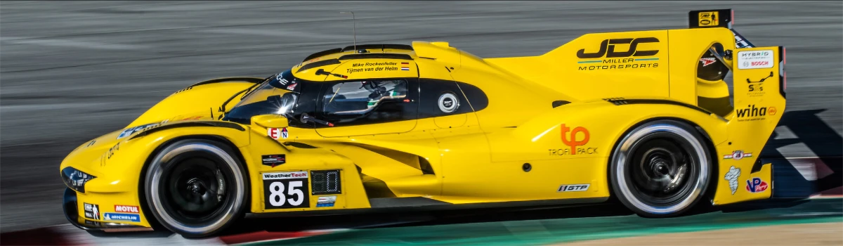 The newest and most technologically advanced Prototype race car took to the track for the first time in 2023, featuring a common hybrid powertrain for all entries that takes kinetic energy gained in braking and stores it in batteries for later use when needed. Six global automotive manufacturers—Acura, BMW, Cadillac, Lamborghini, and Porsche—compete in this class. Each manufacturer developed its own unique internal combustion engine and bodywork styling to take on this cutting-edge challenge.
