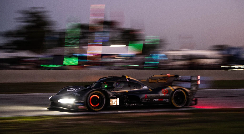 8th in GTP (8th overall), 343 laps completed, only 24.739 seconds behind the winner after 12 hours (dry track, 9 full-course yellow periods). The car matched the leaders’ lap count and was in the podium fight early. The car’s best lap came from Kaylen where raw speed stood out on the bumpy Sebring surface. Laps were quick and consistent, as he worked hard to maximize the car and deliver when it counted, leaving a standout individual showing in tough conditions.