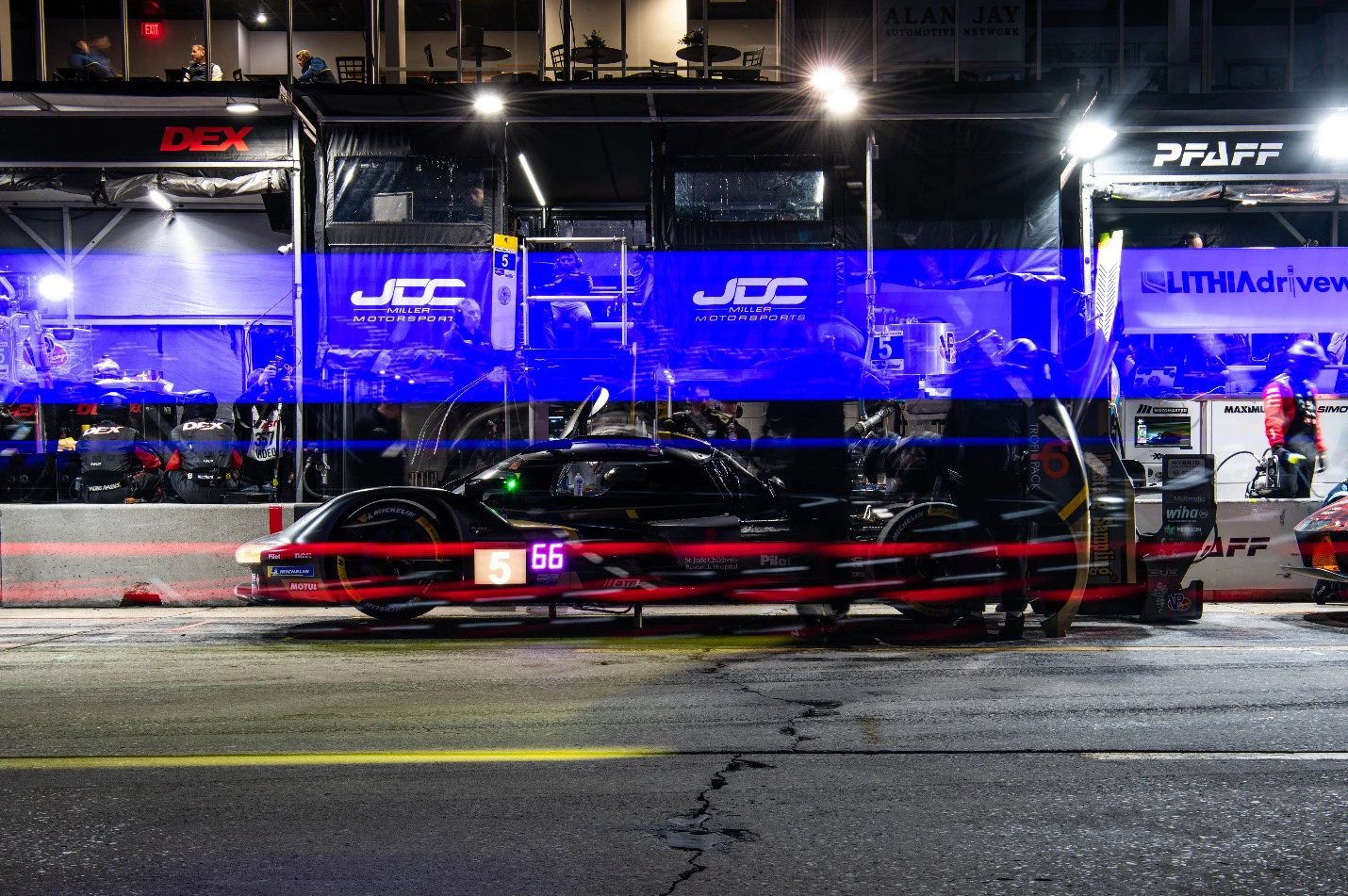 That progress was interrupted by contact in traffic, an incident not of his making. A Penske Porsche contacted and spun the JDC car (receiving a 10 second penalty) dropping it down the order from P7 to P11. During the rest of this stint Kaylen’s excellent energy saving allowed the team a short pitstop under yellow, allowing teammate Tijmen van der Helm to jump forward three positions.